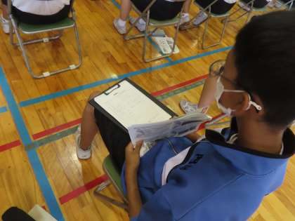 やはりメモをとる生徒が非常に多くいました。最後までしっかり聴くことができました。