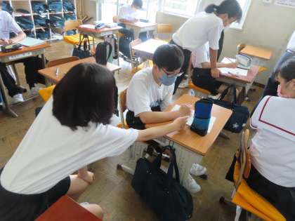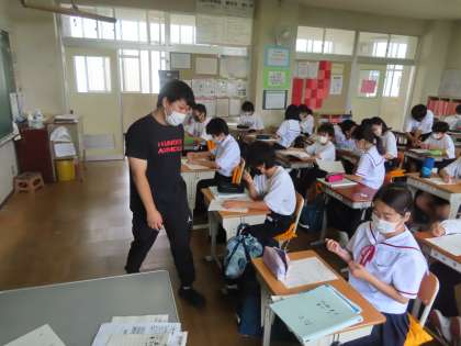 文字式のルールを確認していました。×(かける)÷(わる)は省略する。アルファベット順などの約束の通り、問題にチャレンジしていました。