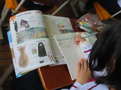 大陸との交流(どのように日本へ大陸の文明が伝わってきたのでしょう?)を学習していました。教科書・資料集などを開き考えているところです。