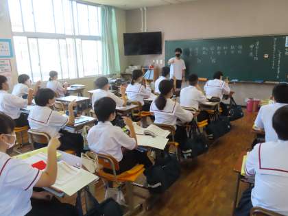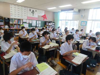 漢字テストの答合わせを行っていました。読みと書きを復習です。特に書きは指を使って空宙で書く練習をしていました。