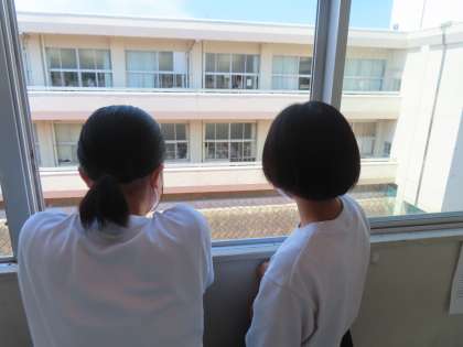 もちろん勉強をしている生徒もいますが、ほとんどは交流していました。外を見て黄昏れている2名もいます。