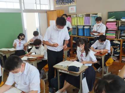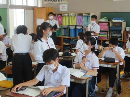県教育委員会と静東教育事務所、市教育委員会から来客があり参観授業をしていただきました。2年生です。