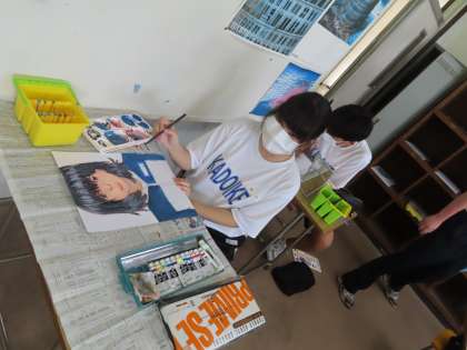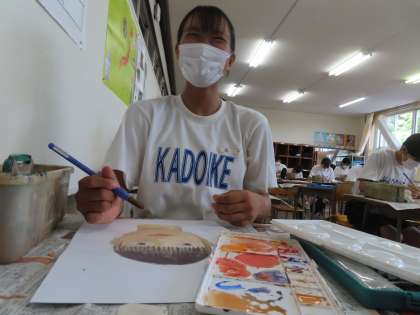 鏡を見ながら完成に近づいていきます。3年生の数学授業です。