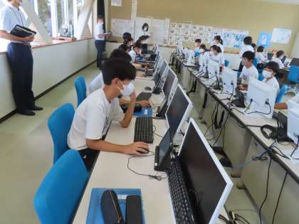技術ではパソコンでの音楽調整です。3年生の英語です。