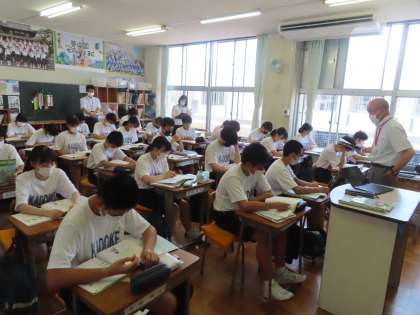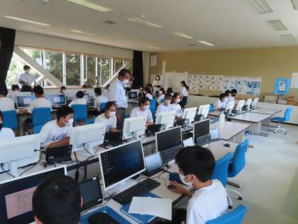 技術ではパソコンでの音楽調整です。3年生の英語です。