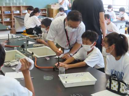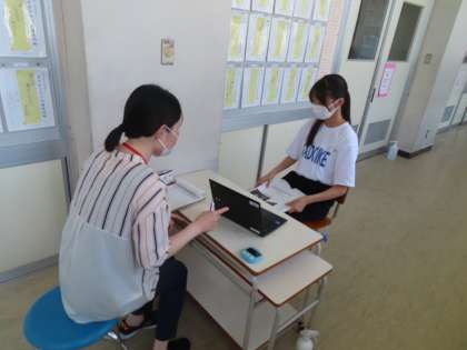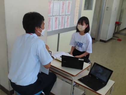 1B理科の実験風景と1A英語の様子です。会話のテストを行っていました。