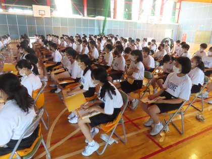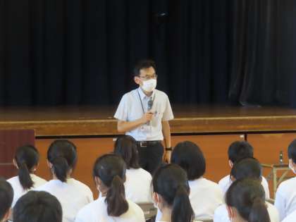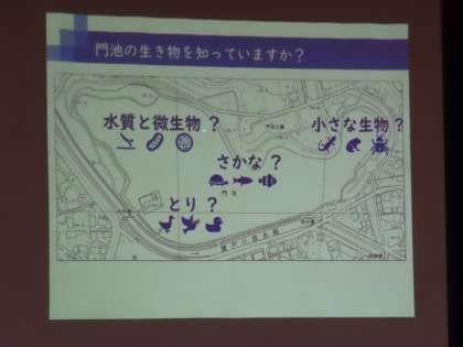 沼津工業高等専門学校より芳野先生と竹口先生が来校され、門池の水質と生き物の話しをされました。