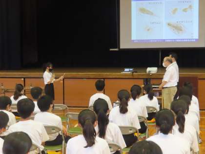 最後は携帯用の顕微鏡でミジンコなどの水中生物を観察しました。先生方も楽しんでいました。