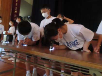 最後は携帯用の顕微鏡でミジンコなどの水中生物を観察しました。先生方も楽しんでいました。