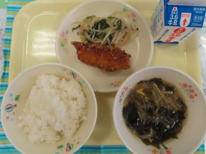 カレー風味のさらさあげです。しっかりあがっていてかみ応えもありました。中華メニューとして満足のできる給食でした。ごちそうさまでした。