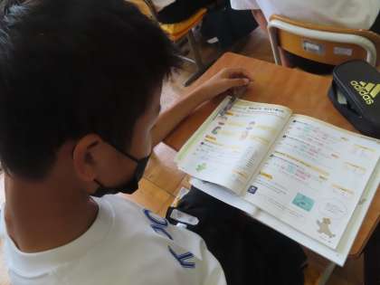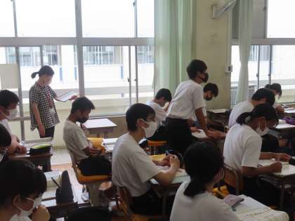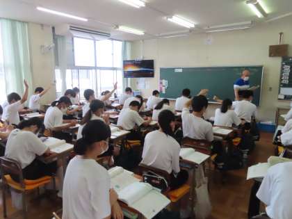 現在完了(進行)形のしくみをについて、より理解を深めることができるように課題を設けています。教科書の文書を読んでいきます。山開支援員も授業参加して下さいます。