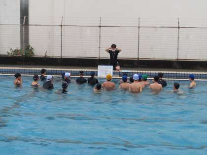 小雨が降っていましたが、水温は低くなく丁度よい状態でした。隣では1年生が泳いでいました。