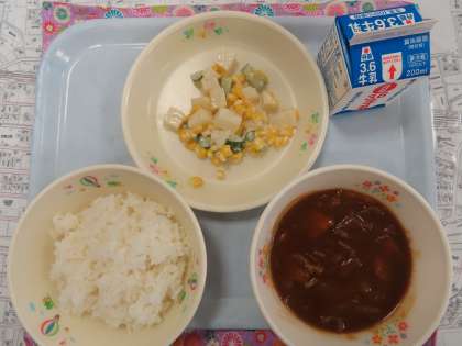 しっかり煮込まれているハヤシライスでした。玉葱やニンジンがとてもやわらかくなっていました。サラダも酸っぱさもありさっぱりいただくことができました。ごちそうさまでした。