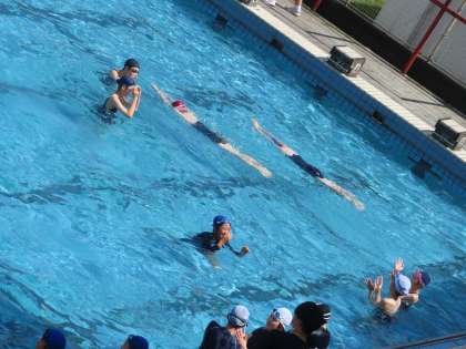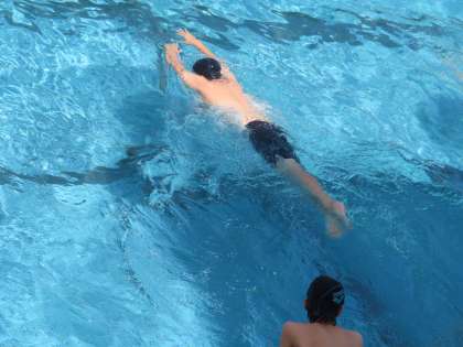 「けのび」の練習です。いかに水の抵抗をなくすかの練習です。