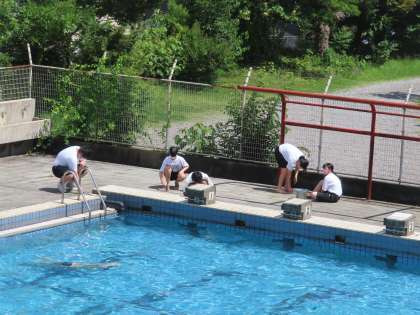 すぐに水面にあがってくる人や水中を進んでいく人がいました。水中の方が進みます。どうしてでしょうか。