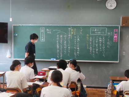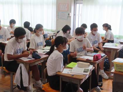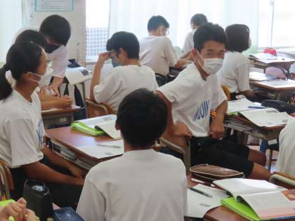 伊藤先生の道徳です。「独りを慎む」と言う題です。心がけたいことは何ですか?その問いに、人が見ている、見ていない関係なく、どんな時にも自分の信念を貫いて心に決める。と記入していた生徒に感心してしまいました。