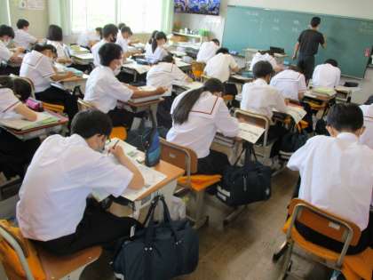 3年生の理科は先日の実験結果を撮影した映像を見合うなど、タブレットを活用した授業を行っていました。他のクラスも暑い中、熱中症に気をつけながら走ったり泳いだり、涼しい部屋で指折り数えながら短歌を考えたり、地図の色つけ作業を行ったり、仲間で教え合い学習にに取り組んだりしていました。