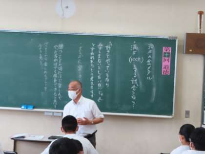 時田先生の道徳です。レスリングの伊調選手の「三十点の金メダル」という題です。連勝記録を作り国際大会の連勝も達成した選手であっても、完全ではない。体力よりもメンタルを追い込まれてしまう。そこでアドバイスをもらった言葉が、「好きでやっているのなら楽しまないともったいない」だそうです。まずは、自分の意志で好きなこと楽しみながらをやる。それが大切なんだと考えます。