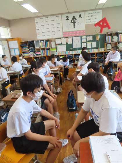 2Aは近藤先生の授業です。主人公の思い、自分のやりたいこと、本当の自分を見つける、自分らしさとは・・を考えていきます。話の内容を自分に照らし合わせて考えていくことができました。