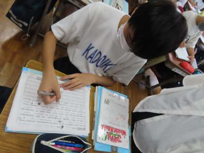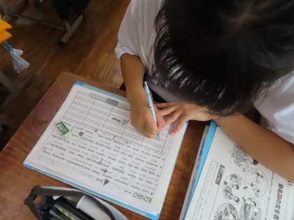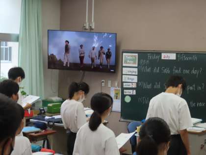 定番となっている授業前の歌です。WHAT MAKES YOU BEAUTIFULを歌っていました。その後はビンゴに挑戦です。