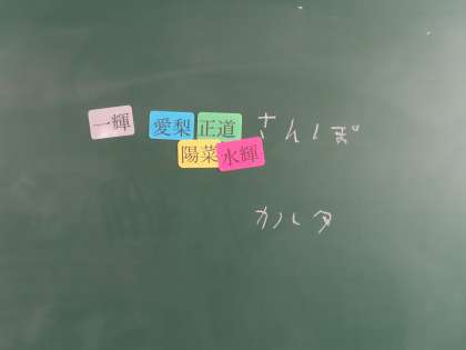 みんなで「カルタ」をやるか、「散歩」に行くか決めていきました。最終的には門池の森を散歩することになりました。みんなで虫よけスプレーを塗っているところです。スプレーしても刺されてしまう生徒もいるようです。