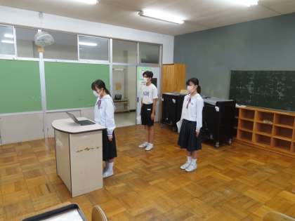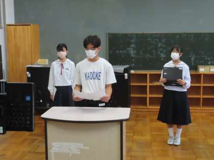 全校生徒が体育館に揃って終業式を行う予定でしたが、新型コロナウイルス感染症が猛威をふるっているため、各教室でのリモート終業式となりました。初めに1学期を振り返っての言葉を学年の代表者が話してくれました。