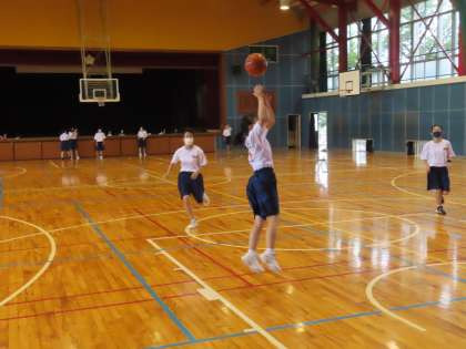 体育館を見てみると女子バスケット部が練習をしていました。同じ様に数値は低い中での練習ができます。
