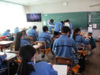 鳥の心臓の観察をしていました。興味のある生徒と完全に距離をとっている生徒が対照的でした。
