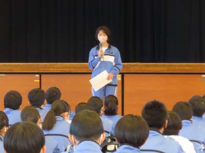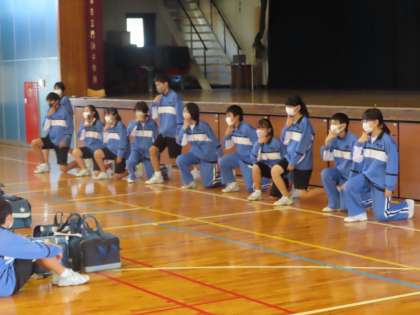 次は食事係、保健・整備係の係長が最終の確認を行っていました。最後は学年委員会が考えた、自然教室のポーズを披露しました。その後全員でポーズをとって士気を高めていました。