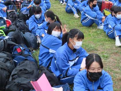 出発式が始まりました。切り替えが早く、静かに話を聞いています。