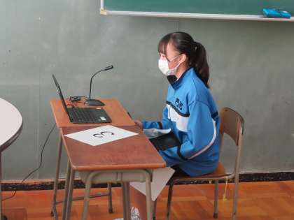 本日門池中学校では、沼津市が主催する英語パフォーマンステストが行われています。本日は3年生で、今後1,2年生も日を変えて行います。
