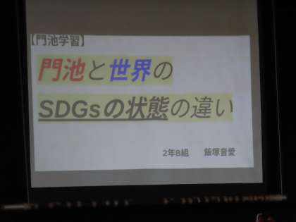 2年生の飯塚さんの発表は「門池と世界のSDGs」についてでした。世界の国々と門池とSDGsについて比較した発表でした。この研究にも質問がありました。