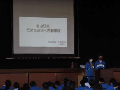 3年の伊藤さん・小野さん発表です。「門池の危険な道調べ」を発表しました。門池周辺を自転車で走り回り、危ないところを探したそうです。たくさん見つかりました。