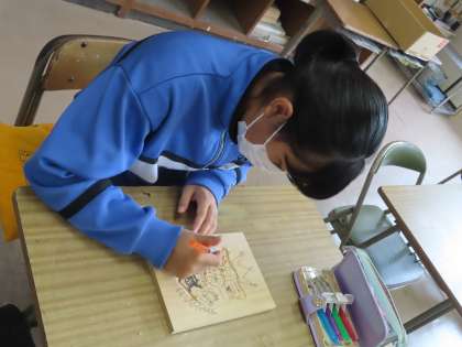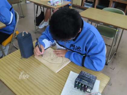 ドアプレートを制作しています。浮き彫りでしっかり浮きたたせることが目標です、黙々と作業を進めていました。
