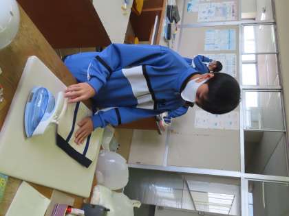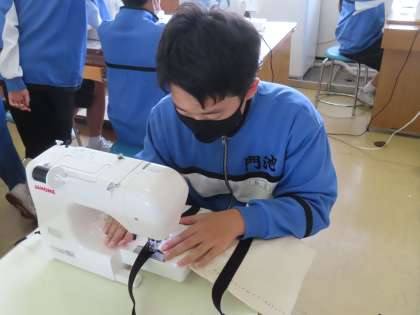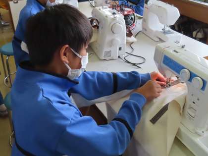 ミシンがけを行っています。縫い間違えがないように真剣に縫っていました。