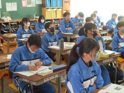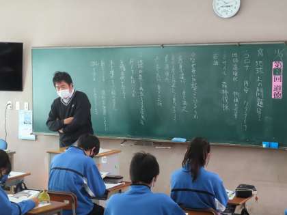 2Cの道徳は吉田先生です。地球の問題について「この先自分にできることは何だろう?」と考えていきます。環境や自然破壊を止めるためにできること、そんなことを考えていきます。