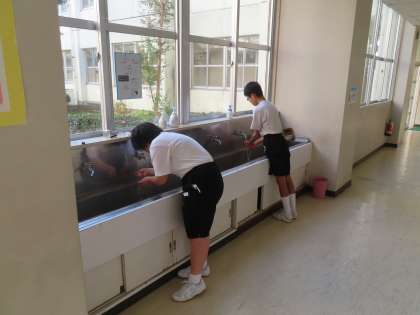 I組は校舎周りを走っていました。気温が低くなりましたが、走るにはちょうどよい気温になってきました。走り終わった後は、水道でしっかり手洗いとうがいです。