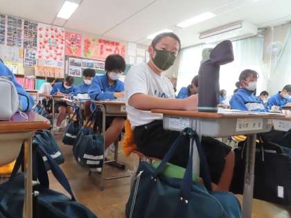 1A数学はテスト返しをしています。テストを振り返りながら確認をしています。解答用紙が写ってしまうため控えめにとりました。