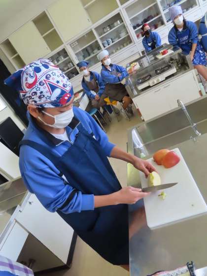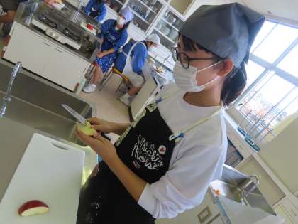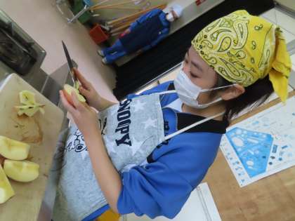 リンゴの皮むきのテストです。写真を撮りながらヒヤヒヤします。指を切ってしまうのではないか心配です。