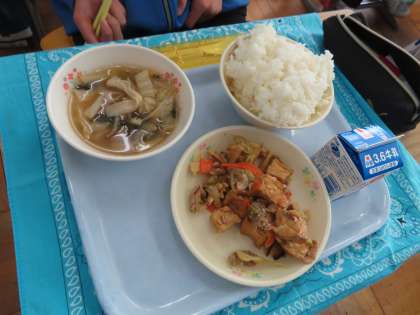 最後の給食は2人分くらい入っていました。ペロリとなくなっていきます。さすがです。