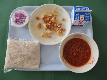 11月16日 本日の給食 公開日 2022/11/16 更新日 2022/11/16 給食 ソフトめん 牛乳 ミートソース ポテトとひよこ豆のから揚げ ぶどうゼリー 学校ならではのメニュー 今日もおいしくいただきました。 いいね(0)