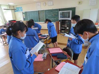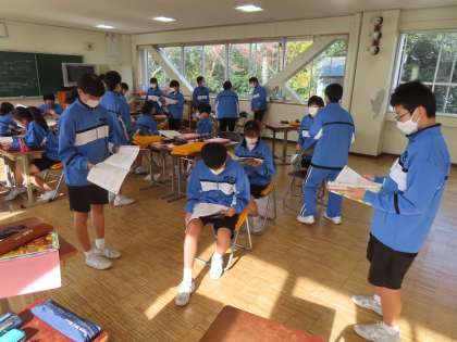 リコーダーのテストが順調に終わりました。次の時間に行う「魔王」の読みの練習を始めました。感情を込めて読んだり劇風にアレンジしたり工夫が見られます。