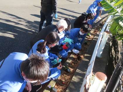 ちょうどよい間隔に決まったら植え付けです。やさしく丁寧に植えてくれました。