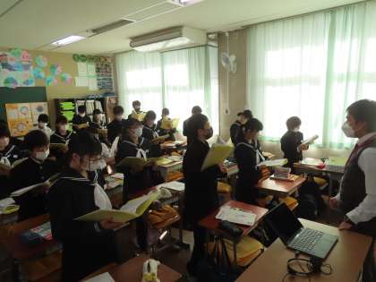 コミュニケーション活動が盛んに行われます。そんな中、クリスマスソングをみんなで歌っていました。ハッピークリスマス(ジョンレノン)の歌です。