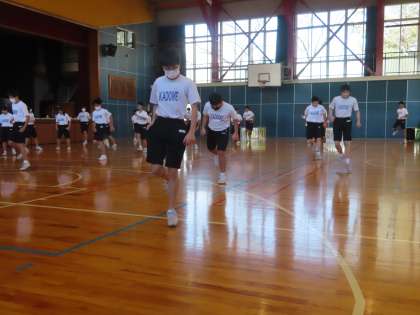 ダンスの基礎的な動きを連続で行っていました。ずっと見ていましたが、だんだん動きが難しくなり筋力も使っていきます。
