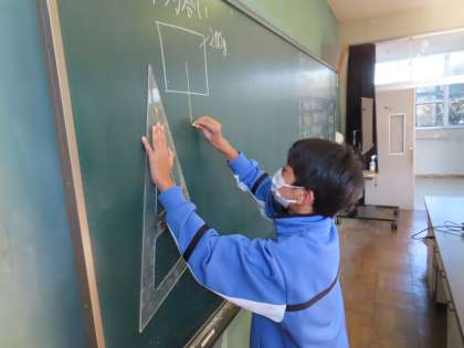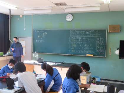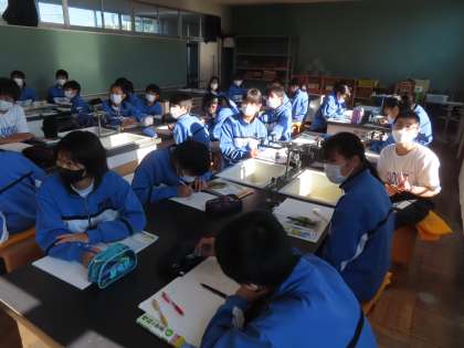 昨日も1Bの理科の様子をHPに載せました。今日も理科室に行ったら,1Bが理科の授業をしていました。「力のつり合い」の授業です。