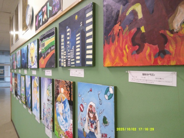 部活動や授業作品、創立50周年の貴重な資料が展示されています。