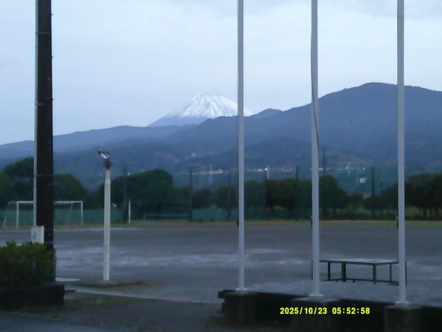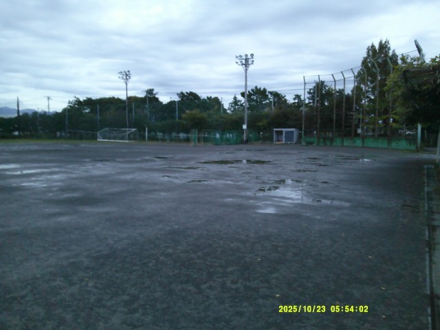 昨夜までの雨により、グラウンドに水たまりが残っています。