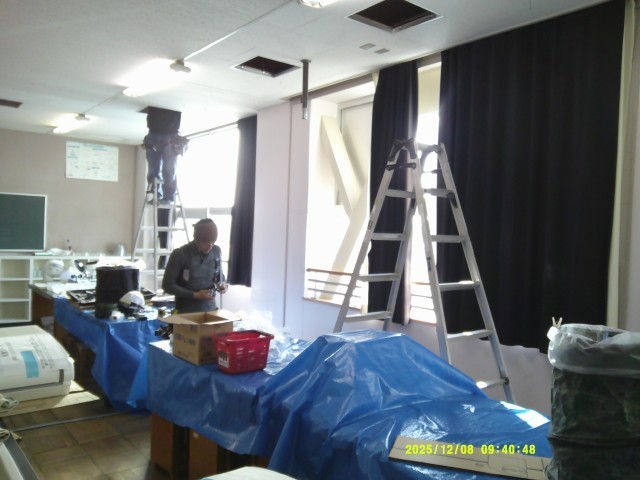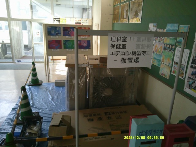 市の理科室等空調設備整備工事計画に沿って、今日から本校の工事が始まりました。