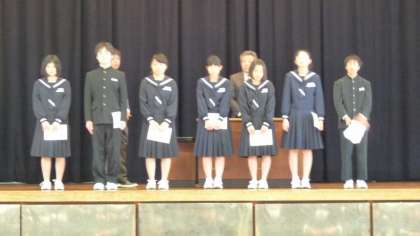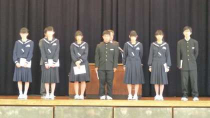 4月7日 始業式の続いて生徒会役員の任命が行われました。平成29年度の前期役員が任命されました。春休み中から対面式の準備など活動をしていました。これからいよいよ本格的に活動がスタートします。みんなでバックアップしていきましょう。